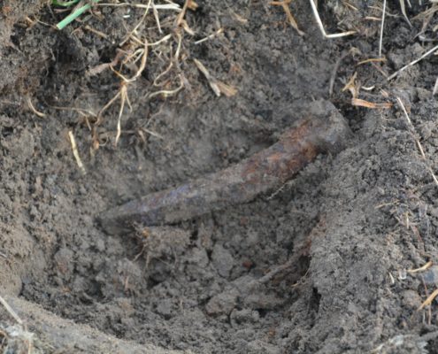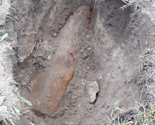 Nie obyło się też bez „wybuchowej” niespodzianki. Na głębokości około 80 cm odkryliśmy niewypał długości mniej więcej 50 cm. Miejsce znaleziska zostało oznakowane, poinformowaliśmy o nim policję.