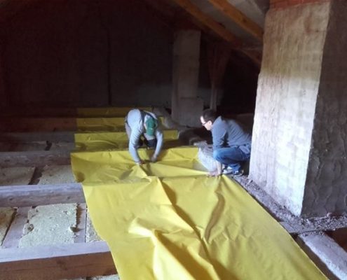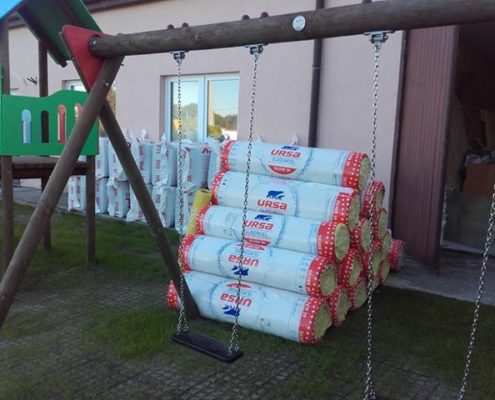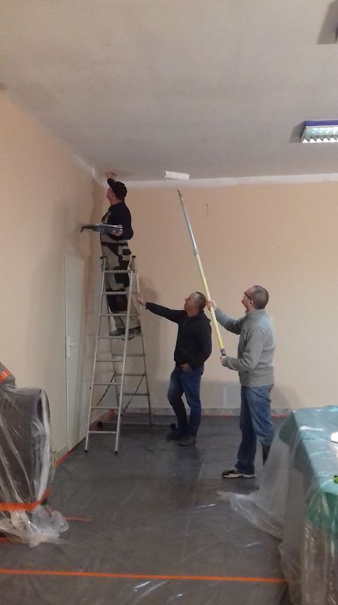 Świetlica wiejska w Goździkowie niedługo zyska nowy, świeży wygląd! Strop został już docieplony wełną skalną i folią, dzięki czemu jest teraz izolowany termicznie. Zespół projektowy zaangażował się także w prace wewnątrz świetlicy. Ściany zostały oczyszczone z kurzu i pajęczyn, a stare warstwy farby zeskrobane. Zdemontowano także wszystkie stare gwoździe, haczyki i inne elementy służące do wieszania ozdób na ścianach, które, no coż… nie wyglądały zbyt estetycznie (i często same wypadały). Po takim solidnym oczyszczeniu, ściany zostały poszpachlowane i przygotowane do malowania. Zacieki i brudne plamy na suficie zostały zamalowane farbą mocno kryjącą. Wymienione zostało także oświetlenie. Zamontowane zostały nowe drzwi i daszek nad wejściem. Z całą pewnością można powiedzieć, że praca w projekcie „Jak feniks z popiołu…” wre! Nie możemy się doczekać efektu końcowego. Zapraszamy do obejrzenia fotorelacji. Można się zainspirować 😉