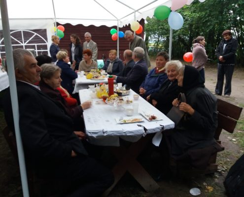 Po otwarciu i obejrzeniu wystawy na wszystkich zebranych czekał poczęstunek. Gospodynie przygotowały pyszną grochówkę i duży wybór domowych ciast. Przy ognisku natomiast można było upiec kiełbaski. Całość uświetniał swoim akompaniamentem Pan Wiesław Iwanowski. Dzieci też mogły liczyć na dobą zabawę. W partnerstwie ze Stowarzyszeniem NASZYM DZIECIOM oraz Zespołem Szkół im. Ks. Kanonika Kazimierza Dymitrowicza w Radzikowie Wielkim przygotowaliśmy dla nich rozgrywki sportowe.
