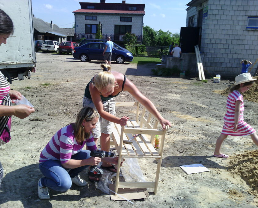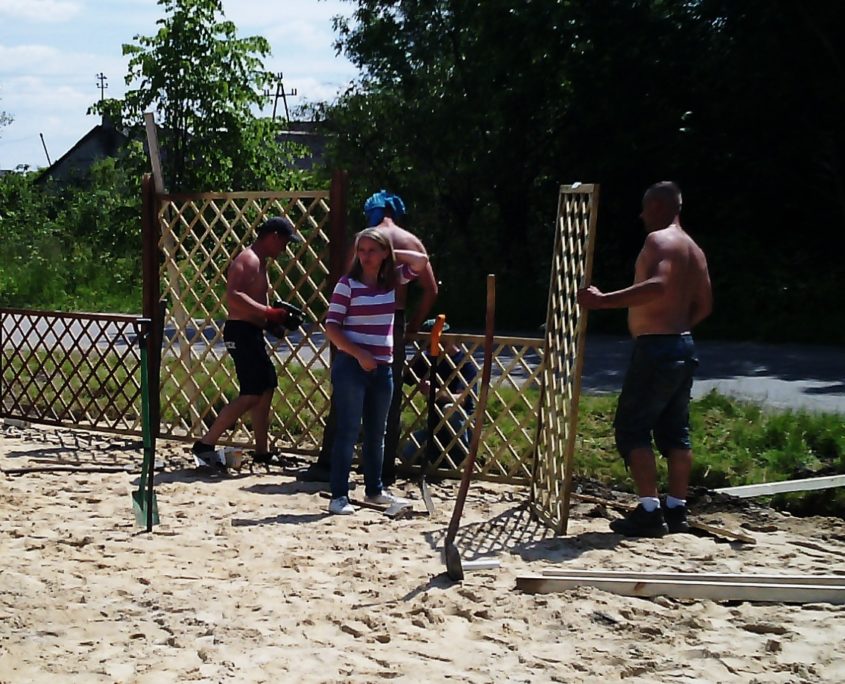 Mieszkańcy Pogroszyna rozpoczęli w sobotę pracę nad realizacją swojego projektu. Do pomocy zgłosiło się wiele osób. Mimo sobotniego upału prace nad przygotowaniem podłoża i ogrodzeniem skweru przebiegły sprawnie. Wszyscy byli zmęczeni, lecz szczęśliwi i dumni z tego, co udało się zrobić wspólnymi siłami.